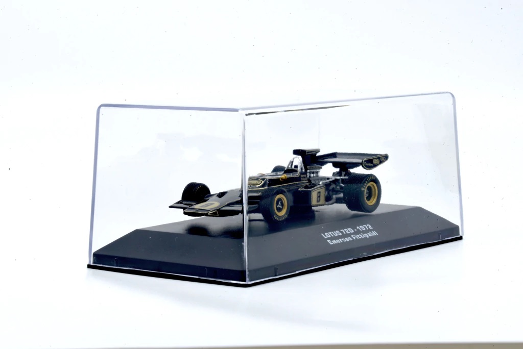 A miniatura da Lotus 72 D de 1972, pilotado por Emerson Fittipaldi, é uma verdadeira obra de arte que retrata com precisão a icônica temporada de Fórmula 1 daquele ano. Em escala 1:43, essa miniatura exibe fielmente o carro que fez história nas pistas, com seu design inovador e performance marcante.