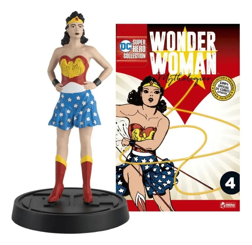 Mulher Maravilha - Wonder Woman Mythologies Debut - Edição 04 Mulher-Maravilha é uma princesa amazônica, membro da Liga da Justiça, e a mais famosa super-heroína da DC Comics! Explore o seu herói interior com esta incrível miniatura da Mulher Maravilhosa de Estilo Clássico da década de 1980, da nova Coleção da DC Mulher-Maravilha Mythologies. Esta miniatura da Mulher Maravilha foi pintada à mão e produzida em resina metálica de alta qualidade, e ela está com seu cabelo dinâmico varrido pelo vento, armada com seus braceletes à prova de balas de prata, criados para protegê-la. Capturada em seu traje vermelho e azul icônico com estrelas brancas e sua armadura inclui sua tiara dourada, peitoral de águia, um cinto de ouro correspondente e botas vermelhas com capas de prata. Seu laço de ouro da verdade está à disposição para todos os inimigos que se aproximam. Os fãs da super-heroína mítica com certeza acharão esta clássica miniatura da Mulher-Maravilha, um complemento essencial para sua coleção DC Superhero!
